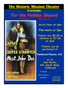 Valid for one showing of the movie "Meet John Doe" on Friday November 15th at 7pm or Saturday November 16th 7pm.