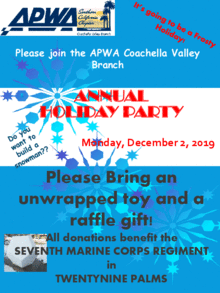 Join us for the APWA's Annual Holiday Party on Monday, December 2, 2019 at the Classic Club in Palm Desert.