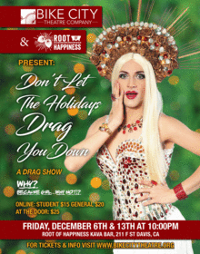 Join Bike City Theatre Company at the Root of Happiness to serve up some Yuletide realness! Occurring on the first two Fridays of December, this X-mas extraVAGANZA is sure to cure any of your holiday blues!