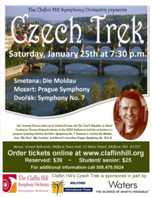 Our Journey Season takes us to Central Europe and The Czech Republic, as Guest Conductor Thomas Hojnacki returns to the CHSO Podium to lead the orchestra, in a program featuring Antonin Dvorak's Seventh Symphony, Smetana's colorful "Die Moldau" from "Ma Vlast" (My Country) plus Mozart's Prague Symphony.