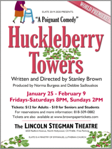 Huckleberry Towers is a poignant comedy that follows a retired couple, Henry and Helen Auburn, as they make the difficult decision to sell their family home and move into a retirement community. They discover their new home consists of a variety of colorful characters who continue to maintain their independence and zeal for living even when faced with a threat to their community.