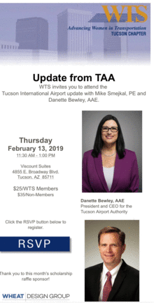 WTS invites you to attend our February luncheon to hear about Tucson International Airport updates from Mike Smejkal and the new CEO, Danette Bewley.