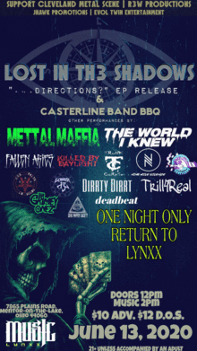 With more performances by: Mettal Maffia The World I Knew Trunk Corpse Fallen Aries T. T. B. Nine Mile Silence Casey Xans Killed By Daylight Our Faith in Ruins Lower 13 Dirrty Dirrt D. R. S. Dead Rapper