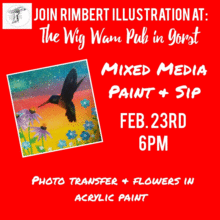 Is spring coming early this year? Let's entice the weather and invigorate our spirits by painting warmer colors and hummingbirds and flowers! Join us for some delicious bbq and an easy to follow lesson in art! Learn to wield a brush and use acrylic paints. Get out of the house and into a good time. $40 includes all supplies, instruction.