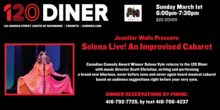 Canadian Comedy Award Winner Selena Vyle returns to the 120 Diner with music director Scott Christian, writing and performing a brand new hilarious, never before seen and never again heard musical cabaret based on audience suggestions right before your very eyes.