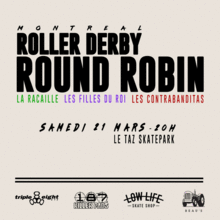Le Round Robin, mythique tournoi opposant les équipes locales de la ligue de Montreal Roller Derby débarque au TAZ le 21 mars prochain pour une soirée à toutes épreuves !