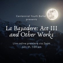 Join Centennial Youth Ballet for the live, online premiere of a collage of classical ballet and contemporary repertoire, reimagined for outdoor spaces.