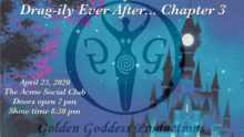 |  | EventDrag-ily ever after... Chapter 3On April 25th, the performers of Golden Goddess Productions are taking to the stage for a night of wicked stepmothers and glass slippers. Serving their finest Fairytale fantasy, these gender illusionists will take you on a visual pumpkin-carriage ride through the Magic Queendom!¿Tickets are all general admission seating.  $15 in advance¿$20 at the door. ¿Ticket sales begin begin Saturday, March 14. Tickets will be available online and at The Beauty Bar, Beach Bums Tanning Salon, and The Acme Social Club. Seating is limited, so get your tickets soon!¿There will be amazing gender illusions, strong drinks, mind-blowing performances, 50/50 raffle, and an audience costume contest.¿So, come dressed as your favorite Fairytale character, enjoy incredible performances, and stay for dancing after the show! ¿Come and join GGP as we make The Acme Social Club into the happiest place on Earth! |  |  | LocationACME Social club  (View)