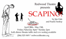 We will be closing our season with Scapino! a comedy adapted from the 1671 Commedia dell'Arte play "Les Fourberies de Scapin" by Moliere. First performed by Frank Dunlop's Pop Theatre company at the Edinburgh Festival in the late sixties, the production would go on to win two Tony Award nominations for best actor and best director in a play.