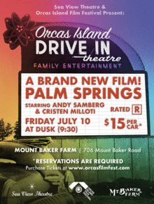 Orcas Drive-In theatre where you can enjoy brand new feature film presentation from the safety of your car! This is the last Drive-In movie in our series until August.