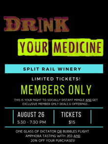 LIMITED TICKETS AVAILABLE to comply with social distancing and masks are required for guests when talking to staff or traveling through the winery.