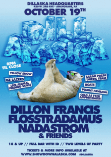 An electronic music event that features the most Electronic Dance music HEADLINERS ever to grace one bill in Alaska. This event was created by Dillon Francis himself and promises to be the best party you've ever been to.