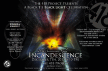 INCANDESCENCE BLACK TIE BLACK LIGHT CELEBRATION Incandescence--the visible light emitted from a hot object-- aptly describes this glow-filled benefit evening of food, dance and performance.