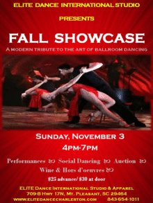 ELITE DANCE INTERNATIONAL STUDIO PRESENT FALL SHOWCASE - A modern tribute to the art of ballroom dancing Sunday, November 3 from 4pm-7pm Performances Social Dancing Auction Wine & Hors d'oeuvres