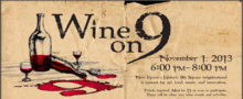 Tickets are priced at $15.00. The Wine On9 logo and poster were created by artist Thomas Drew.