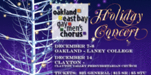Please join Jeremiah Selvey as he conducts the Oakland East Bay Gay Men's Chorus Holiday Concert. The concert includes classics that everyone knows and loves as well as African, spiritual, and gospel and gospel-style music. There is fun to be had by all as the chorus sings about the holidays, including a Christmas story where a little boy saves Christmas for a small American town through unconventional means. The chorus welcomes guest soloist Juanita Harris to complete the festive spirit.