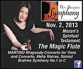 Conductor Adam Stern chose Mozart's spiritual testament, Overture, The Magic Flute as the opening selection for Port Angeles Symphony's Concert No. 1. Also on the program is Brahams' Symphony No. 1 in c, Op. 68. In addition, we are delighted to present Melia Watras as the soloist, for Martinu's Rhapsody-Concerto for Viola and Orchestra.