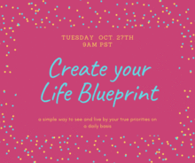 In this workshop I will walk us through a tool where you will map your true priorities. From there, you will be able to take actions to support your goals on a daily basis. Finally, a way to live by intention, rather than by inertia. You will walk away with a clear map for how you want to contribute and it will make decisions about what to do next easier and clear.