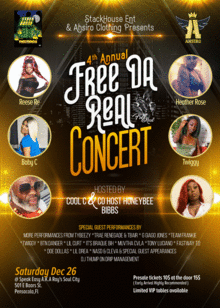 Stackhouserecords is known to care for the incarcerated who've been oversentenced and wrongfully convicted throughout the judicial system. This is the 4th Annual Benefit concert locally; however we strive to go nationwide in the near future. Plans on developing finances to higher lawyers and bailbondsman to fight cases that are corrupt.