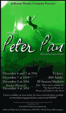 Based upon Sir James M. Barrie's 1904 play about the boy who refuses to grow up, the story begins in the London nursery of Wendy, John, and Michael Darling, where three children are visited by Peter Pan. With the help of his tiny friend, the fairy Tinkerbell, Peter takes the three children on a magical flight to Never Land. This enchanted island is home to Peter, Tink, the Lost Boys, Tiger Lily and her people, as well as the scheming Captain Hook and his pirates who are intent on defeating Peter Pan.