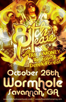 Bitch Please is the ghetto glam bastard child of Atlanta based producer Charles F. Moreland III. It was hatched in the backwoods of Kentucky, when Charles wanted to combine his love for Top 40 R&B/Hip Hop mixed with his passion of creating bass driven beats and remixes. Ranging between electro, dubstep, drum n bass and house music, Bitch Please has no problem changing up the tempo several times during a set. The idea of Bitch Please is simple: Stunner shades, champagne flowing, fur coats, and surprise remixes and vocal samples that bring back memories of drinking boxed wine in your car and getting hype to the new Master P track blasting on the radio.