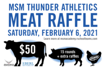 Tickets for this event will go on sale December 7th, 2020 and can be purchased through our athletics website at https://msmacademy.rschoolteams.com/ and by clicking on Virtual Meat Raffle link. Tickets are $50 dollars and include entry into all 12 rounds of drawings with three spins and winners per round, entry into the 3 bonus rounds, entry into the basket raffles and entry into a 50/50 drawing. Add on opportunities include grand prize tickets for a freezer full of meat, and a 4K TV.