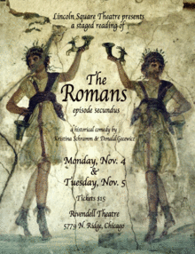 THE ROMANS is an episodic comedy presented as a staged-reading. While each segment is self-contained, a complete synopsis of the previous episode is available on the Lincoln Square Theatre website.