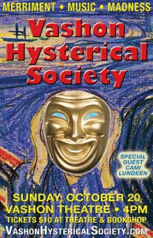 Vashon Hysterical Society Comedy & Music Sunday, October 20 at 4PM Special musical guest will be Vashon singer-songwriter Cami Lundeen.