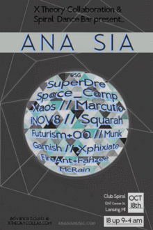 house parties to stadiums by stylistically staying two steps ahead of the game. From huge festivals like Coachella, Lollapalooza, Detroit Electronic Music Festival, Electric Daisy Carnival and others, and an array of clubs and venues spanning every major city, countless college towns and hot spots in between, Ana Sia has built a community just as fun, wild, and eclectic as her style. She has shared the stage with a growing list of artists ranging all styles of electronic dance music, from Diplo to Deadmau5, Datsik to Daedelus...and everybody in between.