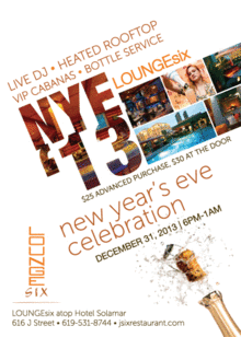 This New Year's Eve will be one to remember at LOUNGEsix atop Hotel Solamar. Join us downtown for all the festivities!