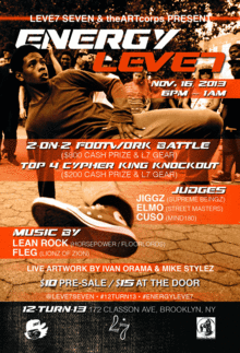 ENERGY LEVE7 2-on-2 Footwork Battle (max 1 Commando/min 1 Routine) | $800 cash prize + L7 gear Top 4 Cypher King (4-way Battle & 1 will take the prize) | $200 cash prize + L7 gear Sponsored by Silverback BBoy Events