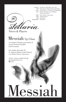 Stellaria presents Messiah Up Close, an intimate performance of Christmas highlights from Handel's beloved oratorio. After our hugely successful performances last Christmas, it is well on the way to becoming a yearly tradition in Vancouver!