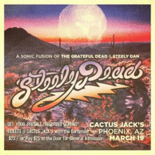 A SONIC FUSION OF THE GRATEFUL DEAD & STEELY DAN More about Steely Dead: Steely Dead is a musical hybrid of the Grateful Dead and Steely Dan. Sonic worlds collide, between the structure, arrangement and precision studio recordings of rock legends Steely Dan, cross-pollinated with the Grateful Deads free-flowing, melodic improvisation and masterful song segues. Steely Dead featured Bill McKay (Leftover Salmon + Derek Trucks Band) and Dave Hebert (Melvin Seals JGB). Steely Dead merges these major concepts together while infusing the influence unto each band. For example, taking the Grateful Deads rocking set ender Deal and Steely Dans Reelin In the Years creating the mashup Dealin in the Years. Steely Dead is committed to the nuance of both bands while remaining playful with jam segues between songs, and delivering a unique musical blend. For fans of both or either one of these great bands.