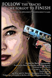 A scathing satire on blind devotion to efficiency for efficiency's sake, FOLLOW THE TRACKS WE FORGOT TO FINISH chronicles the efforts of a group of desperate characters trapped on board a stalled subway train to understand where they are headed in life as they transform into something more than what they previously considered "human." The play is directed by Paul Dervis (winner of Boston Magazine's "Best Play" in 1986 for David Mamet's EDMOND, in 1988 for Tom Eyen's WOMEN BEHIND BARS, and in 1998 for Israel Horovitz's FREE GIFT), and the large, vibrant cast includes Rachelle Casseus (TVO's "Hard Rock Medical"), Corry Burke, Charlie Ebbs, Doug Phillips, Garrett Quirk, and Cameron Rufelds. Conor Romero, who stars as the titular actor's eldest son on NBC's "The Michael J. Fox Show," is co-producing the play with Barry Germansky.