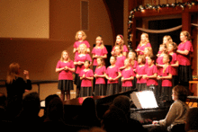 Familiar tunes include "Silent Night", "In Dulci Jubilo", and "Jingle Bell Rock", and texts by poets such as Henry Wadsworth Longfellow and Robert Frost. To prepare our singers for their international choir festival trip to England in the summer of 2014, British composers John Rutter and Benjamin Britten are featured.