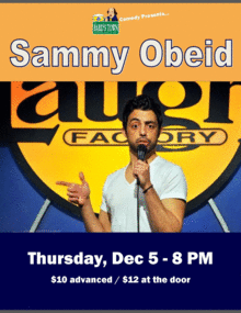 Lebanese American born in Oakland California, Sammy Obeid applies his UC Berkeley double major in Business and Mathematics into bringing laughter to the nation. Sammy's style has been described as 'intelligent', 'inspiring', and 'a youthful perspective that reaches all ages.' As the youngest member both of the national tours, CoExist Comedy and the Axis of Evil New Generation, Sammy has worked with Robin Williams, Russel Peters, Dana Carvey and more. He is also the founder of his own comedy enterprise, KO Comedy, as well as the first comedian to ever appear on the Food Network telling jokes.