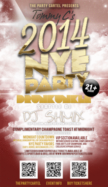 Come ring in the New Year with The Party Cartel at Tommy C's in Port Orchard! Bringing the best NYE Party for the THIRD time to one of the biggest venues in Kitsap, with TWO of the most original and talented DJ's in the Northwest -- DRUNKUNKLE (Seattle) and Hometown Favorite DJ Shmix!