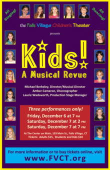 Directed/musical directed by Michael Berkeley and choreographed by Amber Cameron, KIDS! is a dynamic, upbeat musical that is perfect for the whole family and features Broadway favorites and well-known standards showcasing the talents of 18 kids ages 7 to 16, from Falls Village, Lakeville, Canaan, Norfolk, and Sharon, CT.
