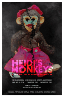 The locally written and produced play Heidis Monkeys, described as a psychological horror where the audience is taken on a ride inside the dark mind of young Heidi as she descends into madness,