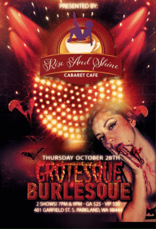 GROTESQUE BURLESQUE Variety Show is Cabaret style entertainment and Halloween event! Featuring acrobatics, flow artists and burlesque! Watch our Spooky and Sexy performances while enjoying your delicious food and beverage here at the one and only Rise & Shine Cabaret Cafe!