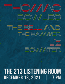 Join us for a festive night of stories and songs with Thomas Bowles, The Bell and The Hammer, and Liz Bowater. The listening room will be decked out for Christmas and we're excited to have you back!