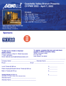 Join us for the 2022 APWA Coachella Valley Branch Public Works Expo on April 7, 2022 at Agua Caliente Casino Resort Spa in Rancho Mirage.