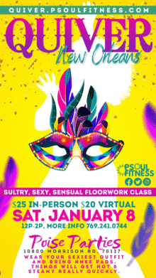 On 1/8/2022, Quiver is touching down in the Big Easy!!! Join Calypso for her signature flirty, sultry floorwork class. Wear your sexiest outfit and bring knee pads. Things will get hot and steamy really quickly. ðð