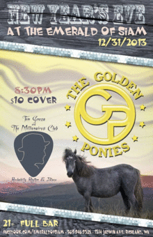 Come ring in the new year at The Emerald! We're excited to have two high-energy, boot-stomping bands help us say "So long!" to 2013. Local legend Tom Gnoza heads The Millionaires Club, a high-energy rockabilly, rhythm and blues act. And introducing The Golden Ponies! This country-themed band mixes elements of rock, blues and alternative music in to their unique, spellbinding show.