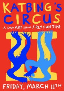 Katbing's 2nd Los Angeles Solo ART Exhibit! Friday, March 11th from 6pm-11pm (Sunset and Alvarado, Echo Park) It's a CIRCUS! With special performers, merch, Event Exclusive NFT's, 20+ original artworks by Katbing on display for purchase! ---AND MORE ART BY---- Kelly Perez David Howler Leslie In Space Deez Quintana Andrea Bergen UMAMI Bee Sarsten Noice Sinister Aex