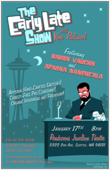 World infamous comedian Yogi Paliwal invites you into the loving arms of the historic Jewelbox Theatre to share artisanal hand crafted sketches, cruelty free pro comedians, and organic interviews and friendship. Get the big network, late night show experience right here in the city we love, Seattle. With warm up comic Cameron Mazzuca to get the crowd going and co host Albert Kirchner to pick up the comedy pieces from all the earth shattering laughs.