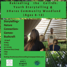 This 8-day storytelling programme will take place at the Three Hares Community Woodland from April - October and is open to 8-13 year olds.