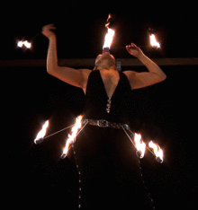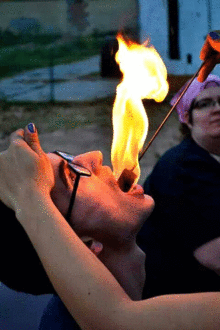 Fire Eating: Learn breath control, how to extinguish torches in your mouth, teeth holds, and techniques to transfer the flame by mouth and hand.