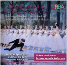 Sultanov Ballet Academy presents Giselle Act 2 and Spring Showcase of classical and contemporary works featuring students of the Ballet Academy. Giselle will feature Guest Artists Jessica Lind and Christopher Kaiser, courtesy of the Oregon Ballet Theatre. Three performances the weekend of May 7 at Sherwood Arts Center.