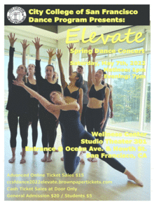 Please join us for ELEVATE, the City College of San Francisco Dance Program's Spring Dance Concert. We are featuring faculty choreography, student alumni new works, and dance films created by our students during their home-studies from the previous year.
